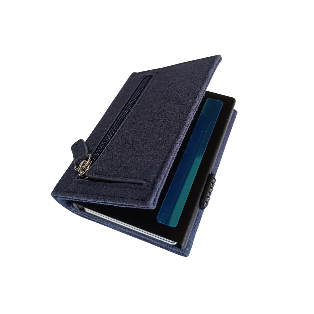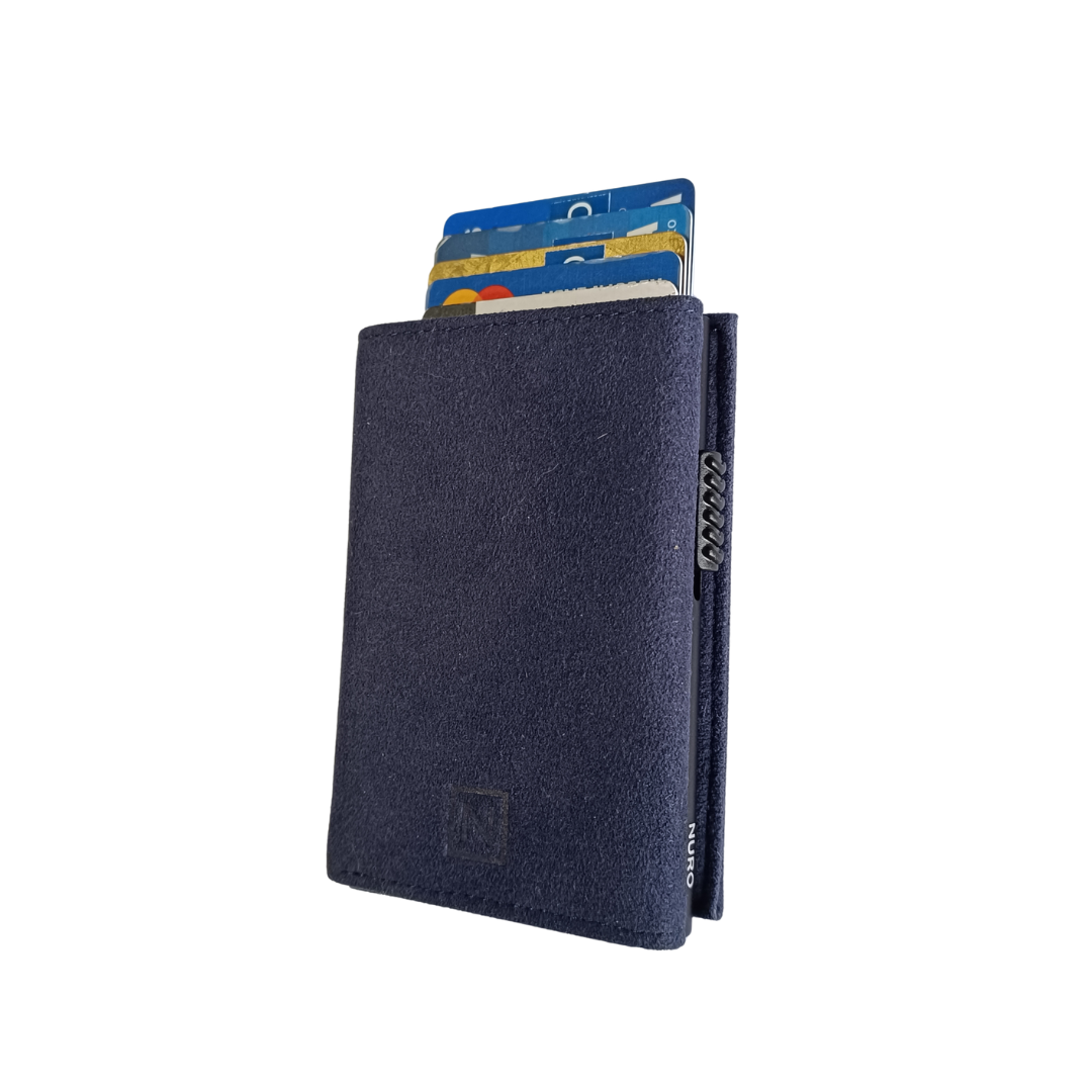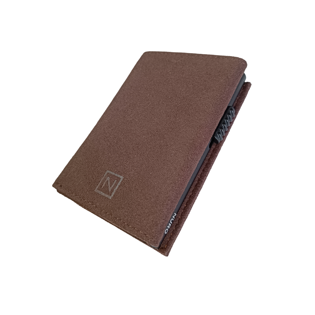 La NURO Vulcano es una billetera de triple pliegue diseñada para quienes buscan un estilo contemporáneo con carácter. Su exterior está fabricado en Alcantara, un material de alto rendimiento utilizado en autos deportivos, que aporta una textura suave, elegante y resistente al desgaste.